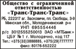 ОДО "Визит", 222301 г.Молодечно, ул.Волынца, д. 12д, пом. 2-12 УНП 600058741,работаем: пн-пт 09:00-17:00; сб, вс - выходной